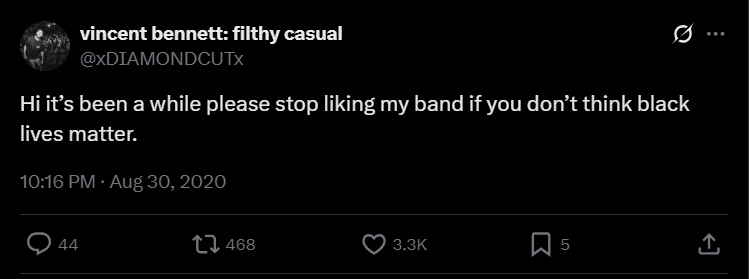 Bennett immediately expressed his shock and horror, including a note about how violent music should be a stopgap to real-life violence. "Music is an outlet. Music should purify," he tweeted. "Use art as a positive outlet to your negative emotions. If you feel angry - turn to music, turn to creation. This has to stop."